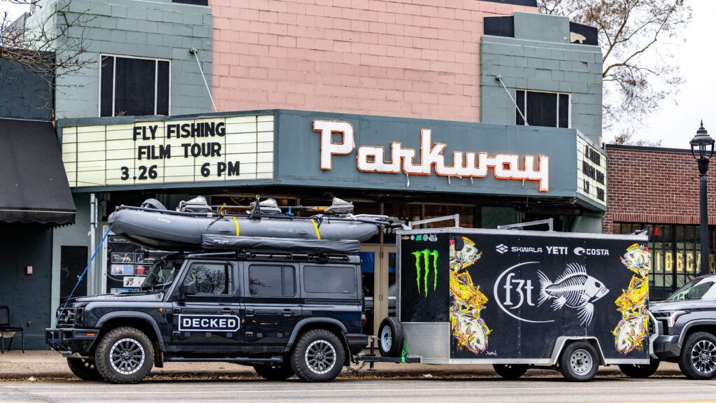 Life on the road is a blur of long drives, late nights, and theaters full of people who love fly fishing and the community the F3T brings together. One night you’re rolling into a mountain town a couple hours before doors open, the next you’re swapping stories with locals over a beer after the show. It’s equal parts chaos and connection—hauling gear, dialing in the show, and then watching a room light up when the films hit the screen. It’s tiring in the best way, fueled by community, caffeine, and the shared energy of chasing fish and good stories wherever the road leads. What most people don’t see is all the work that goes into the F3T long before it ever rolls into your town. It’s countless zoom calls and emails with sponsors, fly shops, designers, and lodges, all trying to map out the next four months of chaos into something that actually works. It really does take an army to pull this off, and the road crew and I are incredibly lucky to have such an awesome team at AE. Toby, Taylor, Rachel, and Avah, just to name a few, make everything run way more smoothly than it probably should.